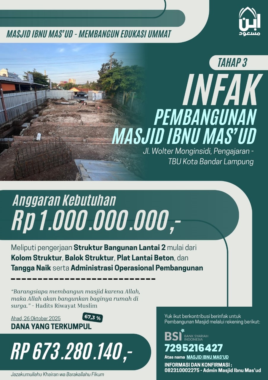 Masjid Ibnu Masud @2025JI. Wolter monginsidi No. 159, Pengajaran, Teluk Betung Utara, Bandar Lampung